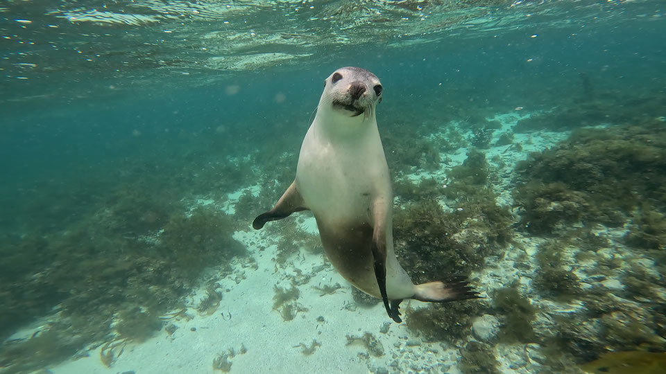 この港から10分ほどでオーストラリアアシカが40頭ほど住む島があり、このアシカ達と一緒に泳ぐことができるツアーです。大型ボートは32名乗りでゆったり、船酔いの心配も少なく